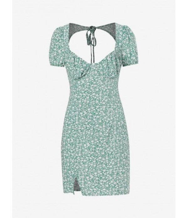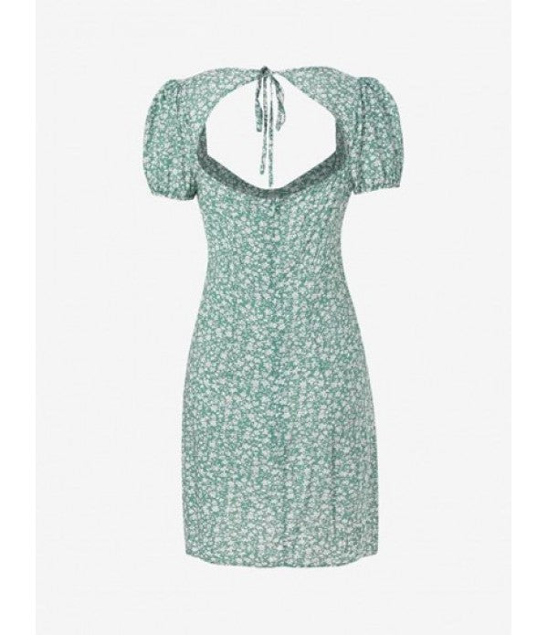 Ditsy Floral Tie Back Puff Sleeve Milkmaid Dress