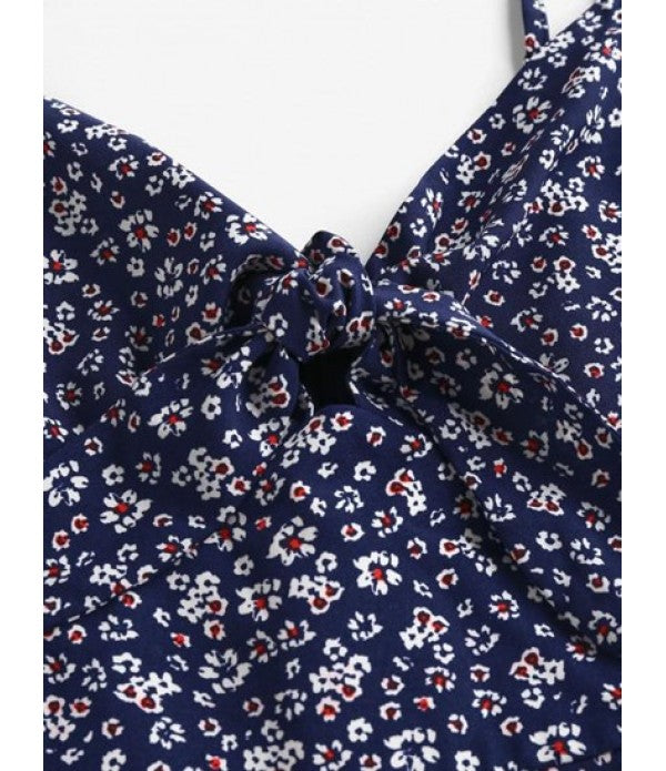 Get dressed up this summer in a new fave. The mini sundress has a vibrant print all over, ties at the bust, and a lovely flounced hemline. Style: Bohemian